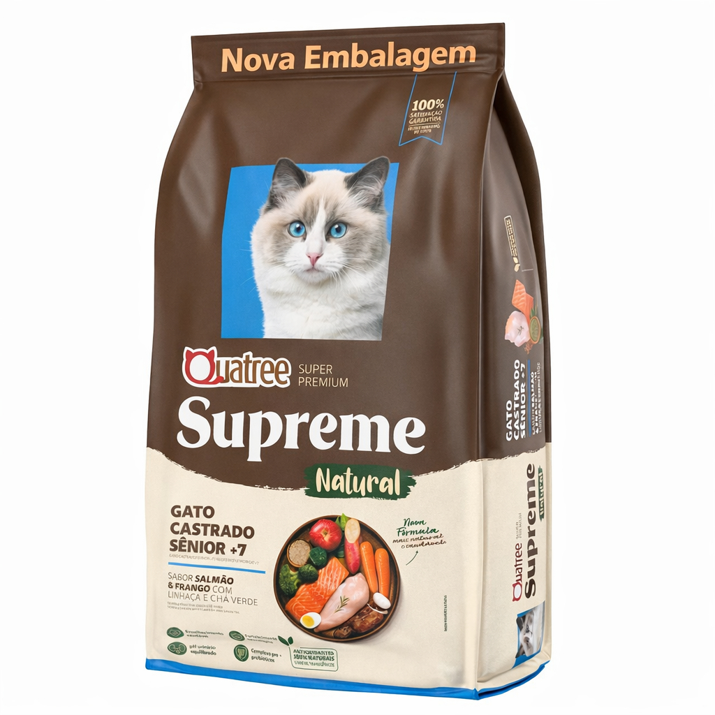 Ração Quatree Gatos Supreme Senior +7 Salmão,Frango e Batata Doce para Castrados 10,1 Kg Cod.2138