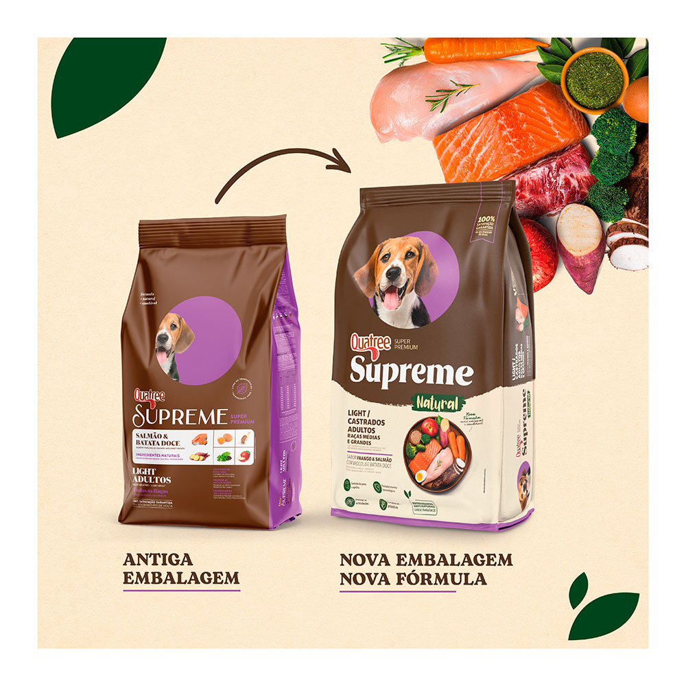 Ração Quatree Supreme Light Salmão e Batata Doce Cães Adultos Medias e Grande Cod.2404